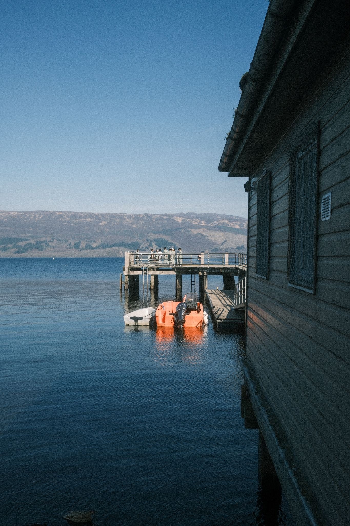In this photo there is a bit of photoception going on… In this photo I captured the pier with the orange boats next to some kind of cabin/shed? But on the pier there was a group of people taking photos of each other enjoying the view, hence the photoception.