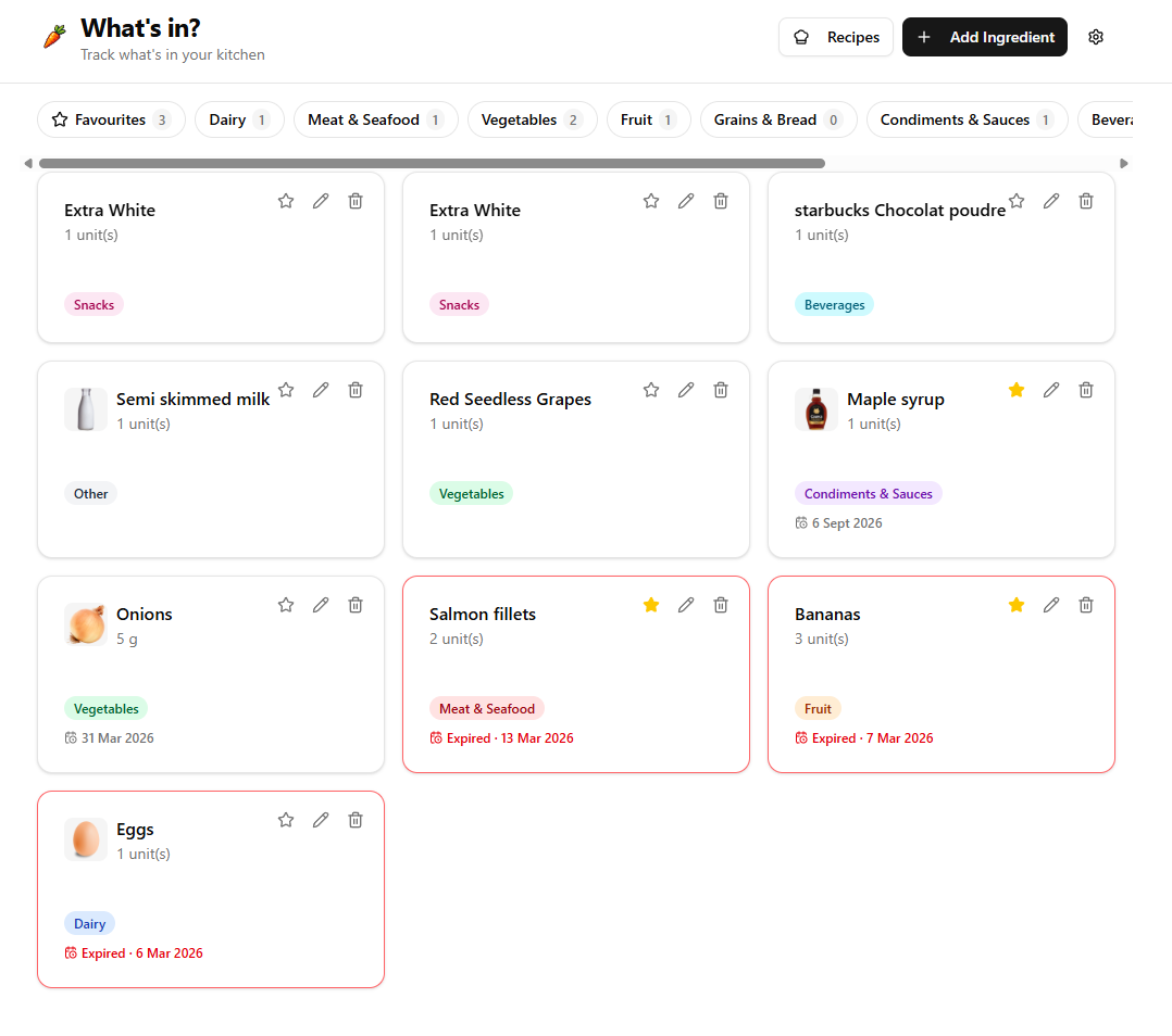 I started a personal project to solve the problem of what we could make for dinner? Often we forget what’s in the fridge or don’t want to cook for more than 15 mins. Before you know it half an hour passes and no action has been taken. I decided to create something that will track what you have in your kitchen and then also recommend what you could make for dinner based on what’s in. This is where Claude Code comes in, I have some experience coding due to my tech background through my honours degree and plenty of design experience through my career. Combining these with Claude Code it took me two nights to have a viable MVP or at the very least a proof of concept. Meet What’s In?