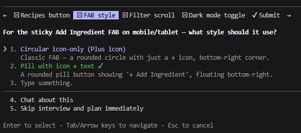 There is a lot to be improved design wise and some features I still need to introduce but the point is it took me less than 6 hours I reckon to design, build and code something that works and solves the problem. Something I have found that has worked for me and saved a lot of time during prompts for Claude Code is instructing it to ask me clarifying questions. In a way I’m the Design Lead, the Tech Lead and the Product Owner. Giving Claude requirements and it’s the junior designer and developer asking me clarifying questions to ensure it executes the requirements correctly. An example here is when I explained I wanted a sticky button in the footer of the page for only Mobile and Tablet, I hadn’t included instructions on icons or labels but Claude asked me about this to Clarify as well as other sections within the image you can see. Going forward this is something I intend to do with all AI tools I use.